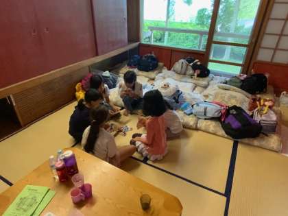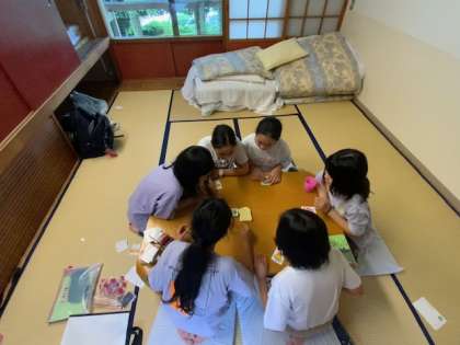 部屋ごとのフリータイムです。カードゲームやドラマごっこ?、シークレットじゃんけん??などなど、楽しく過ごしています。