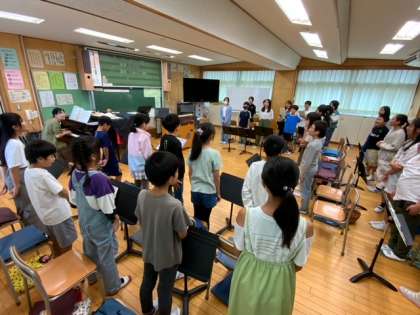 音楽の授業で、学芸会で歌う歌の練習をしました。自分たちで課題を見つけて、解決に向けて練習しています。とてもきれいな声でことばがはっきりと表現することができています。