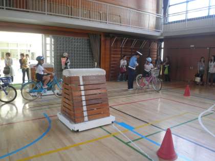 成城警察の交通課の方が来てくださり、1年生と3年生の交通安全教室が行われました。1年生は、道路の歩き方、横断歩道の渡り方などを実際に体育館で練習しました。3年生は、自転車の乗り方です。実際に自転車の乗って、気をつけるべきことを指導していただきました。