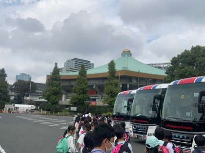 科学技術館に到着しました。途中、東京タワーの近くを通りました。北の丸公園駐車場のすぐちかくには武道館もあります。