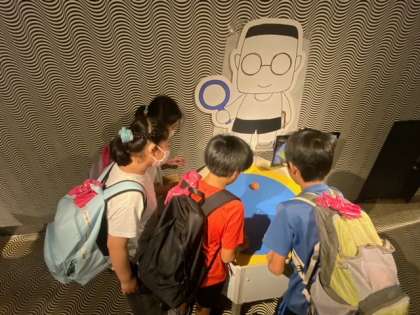 科学技術館の中には、楽しい展示物がたくさんあります。グループで回ってたくさん体験しました。