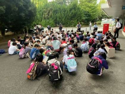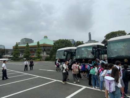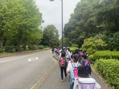科学技術館を出発しました。時間をよく見てグループごとに行動できました。学校へ戻ります。