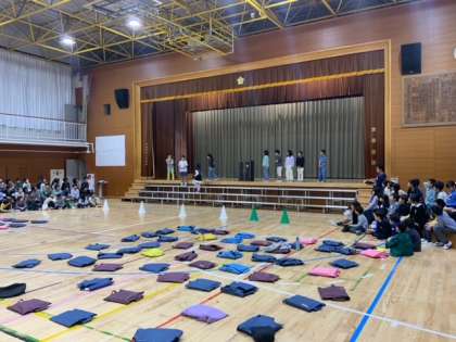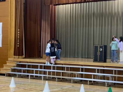 3年生は、どろぼう学校に取り組んでいます。大道具を使っています。早口になり易いので、ゆっくりと動作を大きくすることを練習しています。