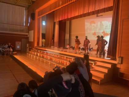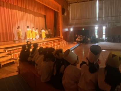 衣装を身に付けての通しの練習をしています。気持ちも入って一層よく声が出ています。