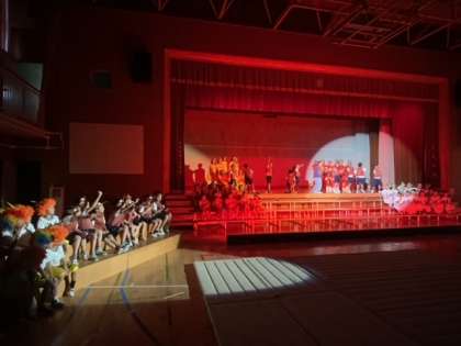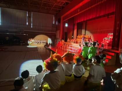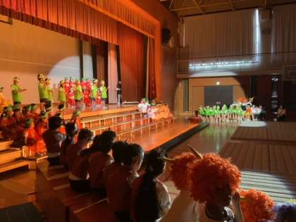 衣装を身に付けての練習です。自分の台詞や全体の台詞、歌に立ち位置や移動場所など覚えることが沢山です。力を合わせて舞台を作っていっています。