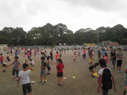 今週末までなわとび旬間です。子どもたちはなわとびカードを使っていろいろな跳び方に挑戦してします。20分休みの校庭の様子です。子どもも先生もみんな外に出て、なわとびに取り組んでいます。校庭が子どもでいっぱいです。
