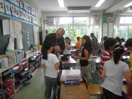 烏山小学校では、5,6年生は授業の英語活動が週一回あります。1年生から4年生までは、年間4〜5回、外国の先生と映画活動を実施します。