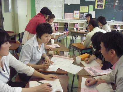 授業参観の後、いくつかのグループに分かれて小学校・中学校の立場からの授業に対しての意見交換会をしました。これからの9年教育に関してよい勉強ができました。