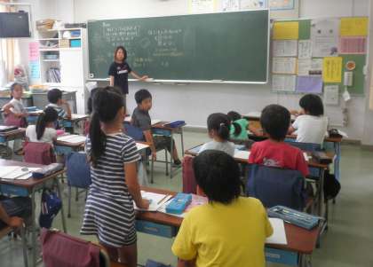 1年生と3年生の算数の学習を見ました。1年生は、引き算の学習でした。3年生は、割り算の学習でした。どちらのクラスも5時間なのに、静かに真面目に学習に取り組んでいました。