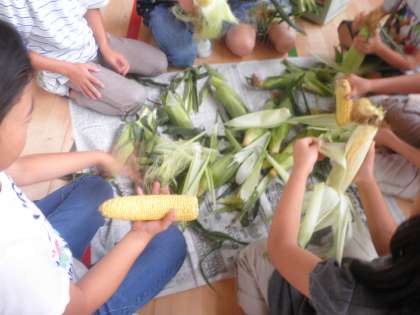 7/12 2年生 生活科ートウモロコシの皮をむこうー
