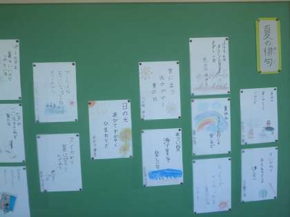 3年生は、夏の季語を使って俳句を作っていました。4年生は、漢字の部首や作りを組み合わせて、オリジナルの漢字を作っていました。なかなか面白い漢字があります。