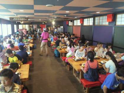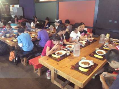 お昼ごはんのあとは、バスに乗って、学校に向かいます。