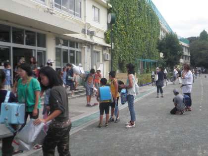 今日は引き渡し訓練を実施しました。いろいろな想定がありますが、何か起こった時には、子どもたちを引き取りに来ることは確実です。今日、配布しました「世田谷区教育委員会」の「大規模地震が発生した場合の対応について」のプリントをよく読んでおいてください。