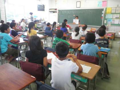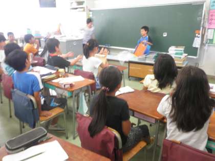 4年生が、教室で、自由研究の発表会をしていました。1組も2組も自分のやった自由研究の内容や苦労した点などをみんなの前で発表していました。ユニークな自由研究も多く、聞いていてとても楽しそうでした。
