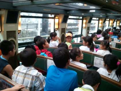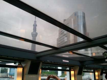浅草から水上バスに乗って、日の出桟橋に向かいます。