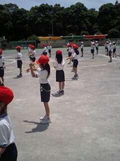 2年生の運動会での表現運動は、なわ跳びを取り入れたものです。曲に合わせて、みんなでいろいろな飛び方を行います。