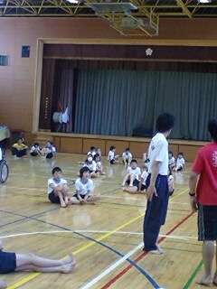 先生の見本に一生懸命、見入ります。その後、4人組で技に取り組みます。まだまだ完成には時間が必要ですが、全員が真剣に練習に取り組んでいます。