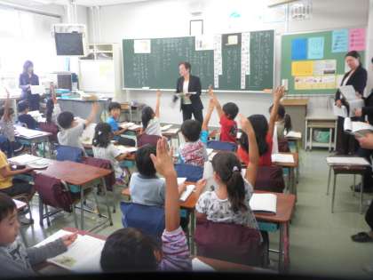 今日は、1年1組の国語の授業でした。最初は緊張していたようですが、だんだんと慣れてきて、真剣に考えたり、元気に発表したりとよく頑張っていました。みんな良い学習ができました。
