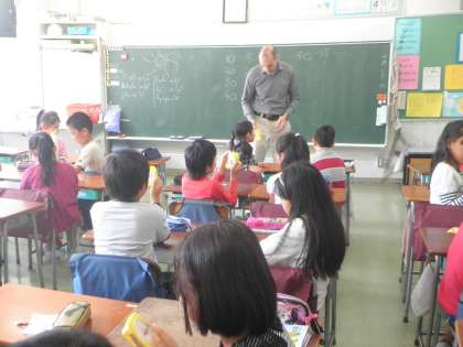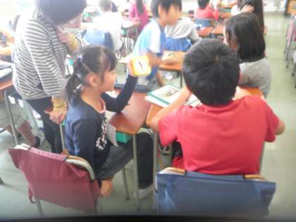 4年生の英語活動の様子です。今日は時刻の聞き方、答え方をやっていました。二人組になって時計を見ながら質問したり、答えたりしていました。