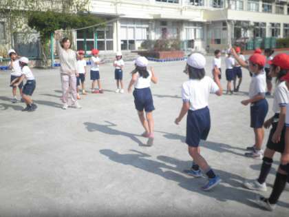 2年生の体育を見ました。大縄の練習をしているクラスがあります。(大縄集会は先週雨のため、10月25日に延期になっています。)