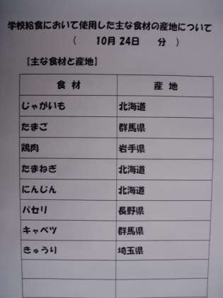 10/24 今日の給食の食材の産地