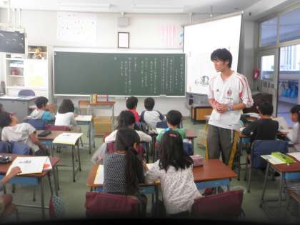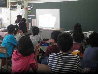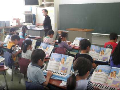 校舎を回って授業の様子を参観しました。1年生は鍵盤ハーモニカの練習です。みんなでキラキラ星を演奏していました。だんだん上手になってきています。2年生は国語の学習をしていました。「きつねのおきゃくさま」の学習を真剣にやっています。6年生は、道徳の学習で、実物投影機を使って視覚に訴えた学習をしていました。それぞれのクラスでいろいろと工夫した学習をしています。