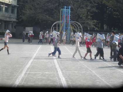 今日の避難訓練は、地震を想定した避難訓練でした。区役所から起震車が来て、4年生が体験しました。烏山小学校では、毎年4年生が起震車の体験をしています。