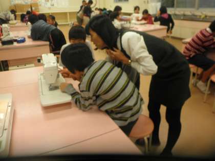先日、お願いしました家庭科ボランティアですが、何名かお手伝いに来ていただいています。今日は、ミシンの下糸を出す練習をしています。ボランティアの方がいると大変助かります。5年生は40名です。学年関係なくお手伝いいただける方はぜひご協力下さい。