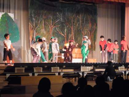 5年生「モモジロウの冒険」6年生「魔法をすてたマジョリン」つくし学級「めざすは、森のたからもの」の様子です。