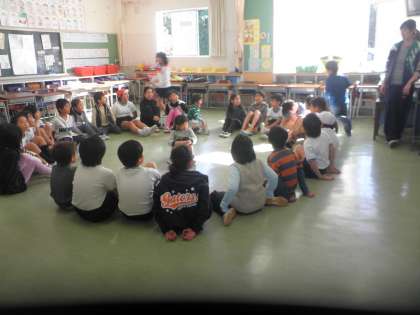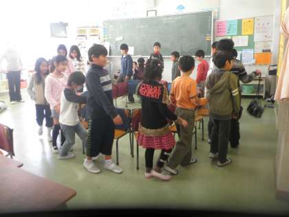 たてわり給食の後は、たてわり遊びです。校庭で遊ぶ班と教室で遊ぶ班に分かれて、6年生が計画した遊びに取り組みます。みんな仲良く楽しそうに遊んでいます。