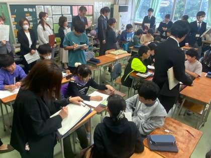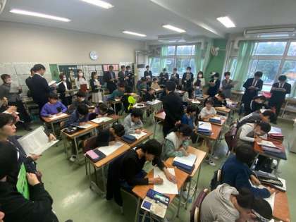 教育長や教育委員、教育委員会指導課の先生方による訪問がありました。午前中はつくし学級、せせらぎ学級、すまいるルームを含めた全クラスの授業と、午後は6年生の算数を見ていただきました。先生方や子どもたちのがんばりをたくさん認め、褒めていただきました。