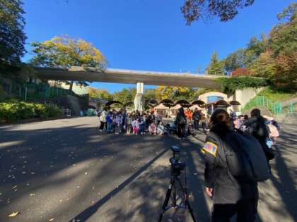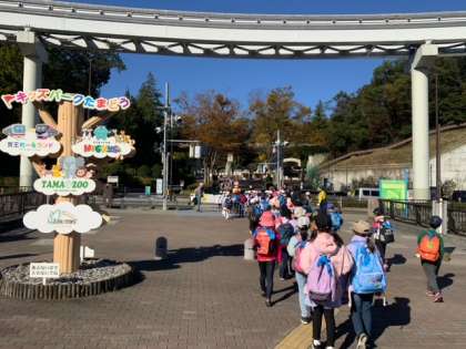 多摩動物公園に到着しました。入口でクラス写真を撮りました。