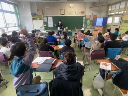 算数で、平行四辺形の特徴について確認をしています。子どもたちのことばで振り返りをしました。