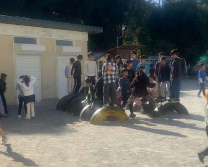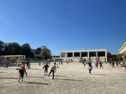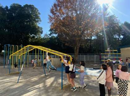 とてもいいお天気で、暑いくらいです。外で遊んでいる子どもがたくさんです。