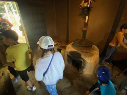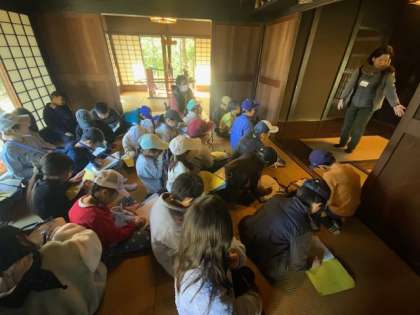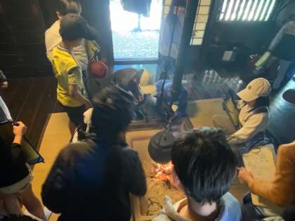 加藤家の中に入り、昔の方の生活についてお話しを聞きました。囲炉裏からの煙の匂いもします。