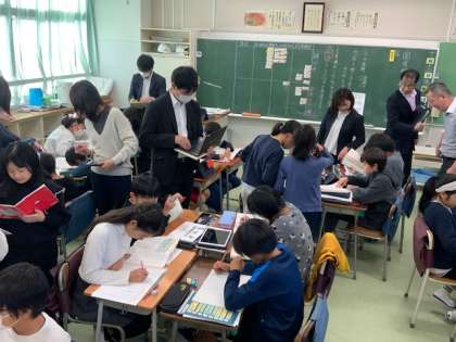 5年生の国語「固有者が教えてくれること」で、子どもたちに単元を貫く探究課題を解決するための必要な問いをもたせ、協働的に学習を進めていきます。子どもたちはそれぞれがまず、説明文とよく向き合い、要旨・納得・共感文を作成するゴールを目指して、子どもそれぞれの学習ペースで進めています。