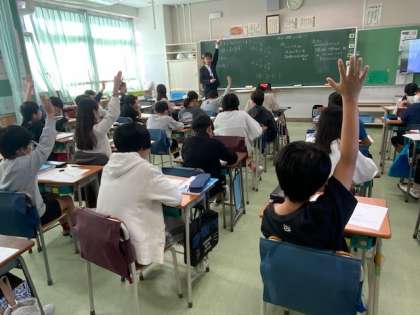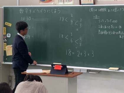 温知学舎の上祖師谷中学校の数学の先生からの5年生の子どもたちへ向けての授業交流です。数学の素因数分解について学びました。中学校での学習を楽しみにする感想もありました。