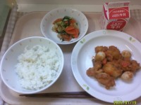 1月26日(月)今日の給食*きな粉あげパン*肉だんご入り春雨スープ*シャキシャキ...