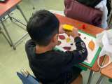 図工のしぜんからのおくりもので、秋さがしで見つけた葉っぱなどを使って、画用紙に工...