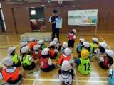 「たのしくあそぼう、からっぴランド」 マットを使った運動遊びで、烏山小学校キャラ...