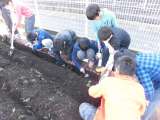 今日はみんなで学年園に畝を作り、ジャガイモを植えました。ジャガイモは6年生になっ...