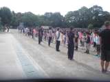 今朝の全校朝会の様子です。まず、最初は担任の先生は全員前に立って、きちんと挨拶...