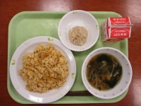 【今日の献立】*キムチチャーハン*トックスープ*フルーツヨーグルト*牛乳【主...