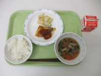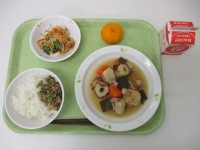 【今日の献立】*ごはん*さんが焼き*じゃがいものきんぴら煮*根菜汁*牛乳【主...