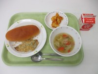 【今日の献立】*シーフードピラフ*ポテトクリーム焼き*キャベツのスープ*牛乳【主...