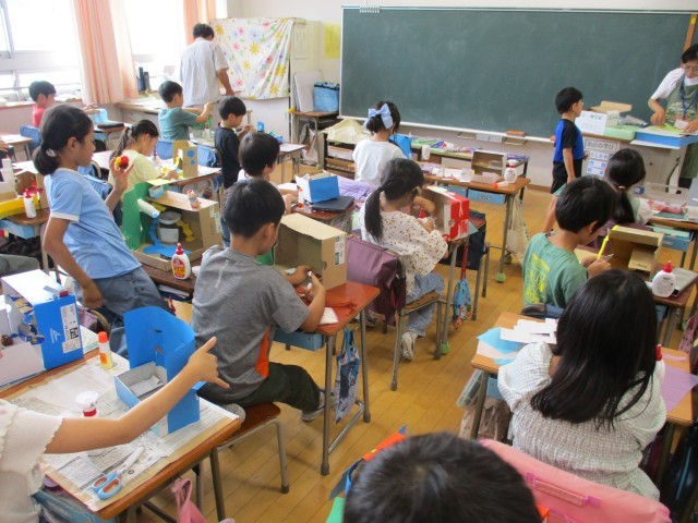 3年生 理科の実験、図工の工作、4年生 国語の朗読発表会の様子です。