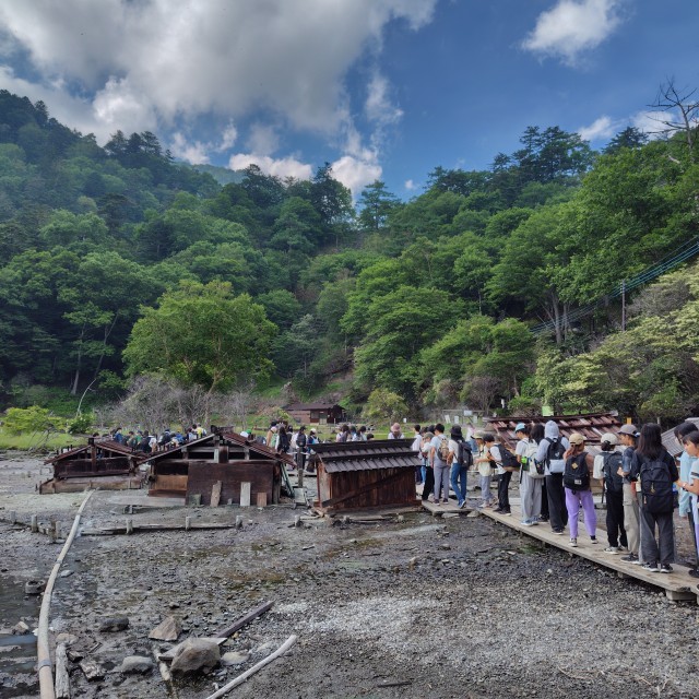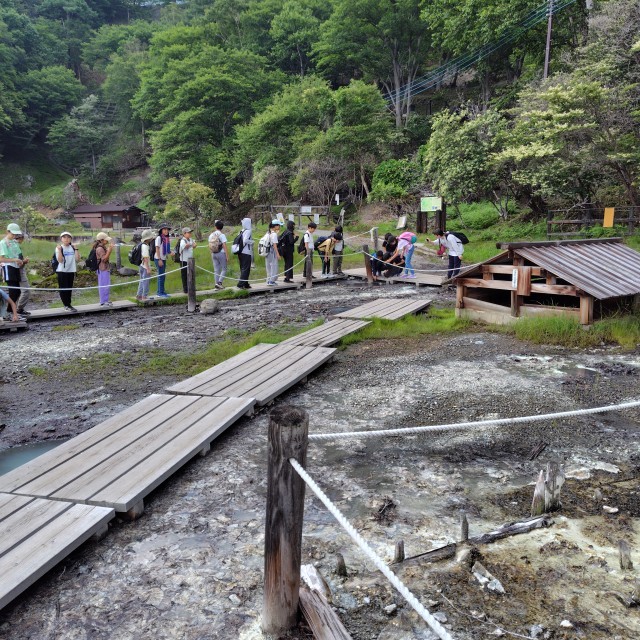 まわりの池からも湯気が立ち、温泉独特のイオウの匂いが立ち込めていました。