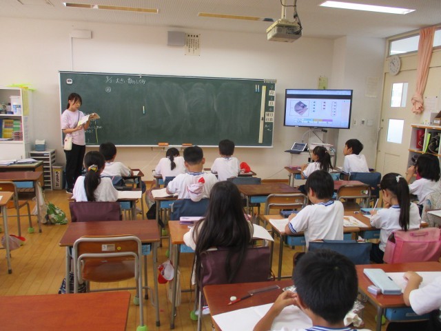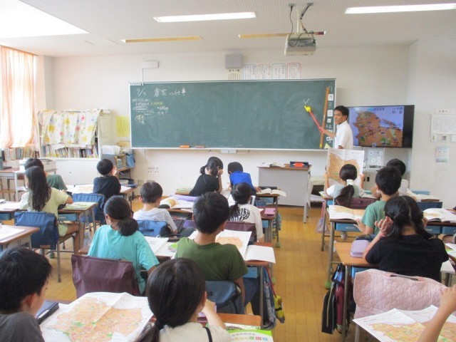 3年生の学習の様子です。1組国語、2組算数、3組社会の学習の取り組んでいました。
