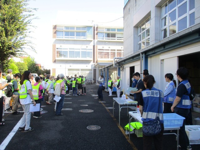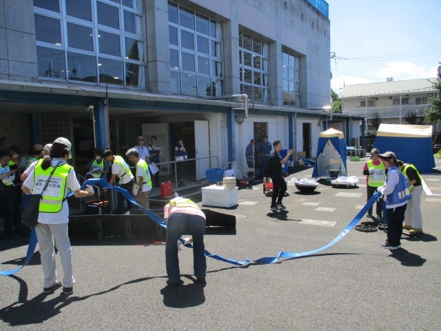 9月6日(土)に本校を会場にして、烏山まちづくりセンターや烏山総合支所、町会、PTAの方々が参加して避難所運営訓練がありました。仮設トイレやダンボールベッドの設置、無線連絡や非常食の炊き出しなどの訓練を行いました。