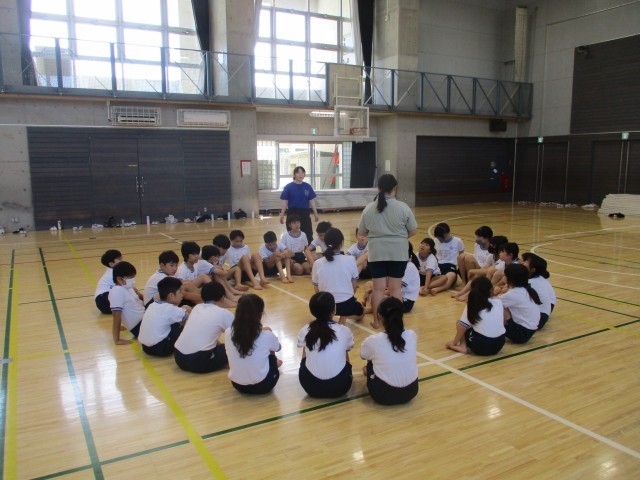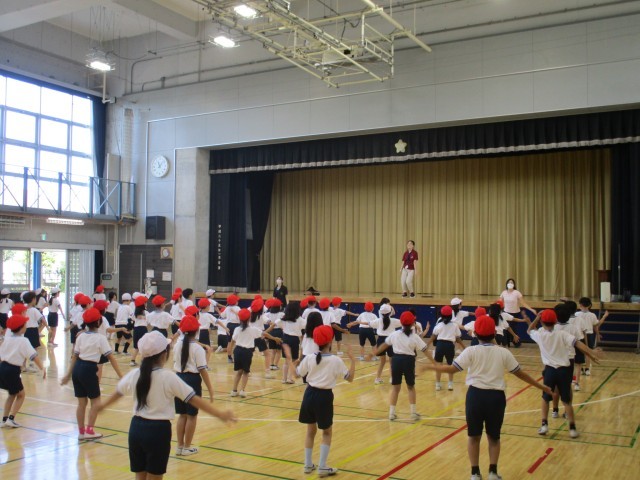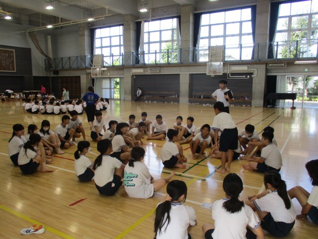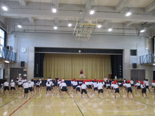 6年生と2年生の運動会の練習の様子です。6年生は児童同士で声をかけ合いながら動きやタイミングを確認していました。